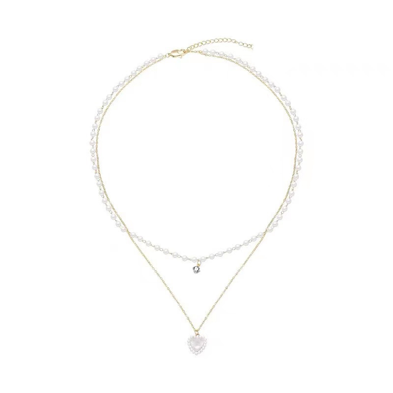 Women's Simple All-match Pearl Heart-shaped Double-layer Necklace
